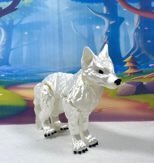 White Articulated Wolf Toy, 3D Printed Wolf, 4.75" Executive Desk Decor, Fidget Toy