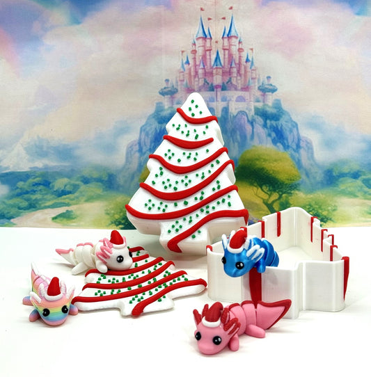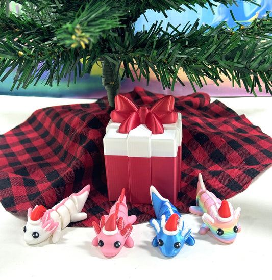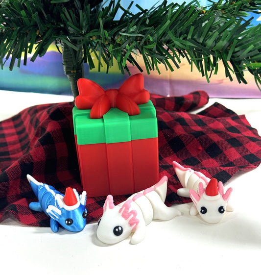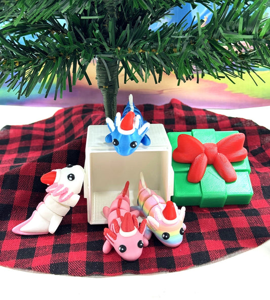 3pcs Mini Axolotl 3d Printed Christmas Axolotl Charms, 3D Printed Christmas Gift Box Container, Tiny Animal Figures Christmas Hat Axolotl Toy - MCA001-GB (Copy)