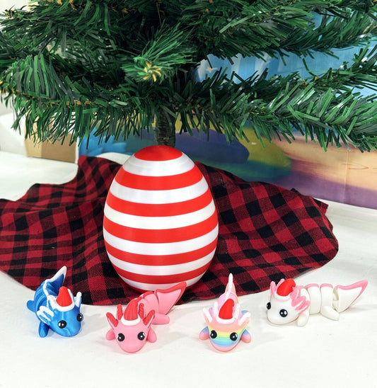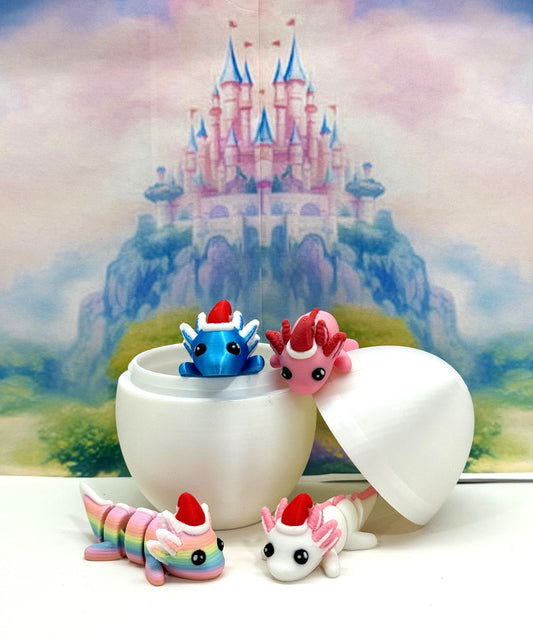 4pcs Mini Axolotl 3d Printed Christmas Axolotl Charms, 3D Printed Christmas Egg Container, Tiny Animal Figures Christmas Hat Axolotl Toy Mini Axolotl Landscape Aquarium Dollhouse Ornament - MCA001-CEGG