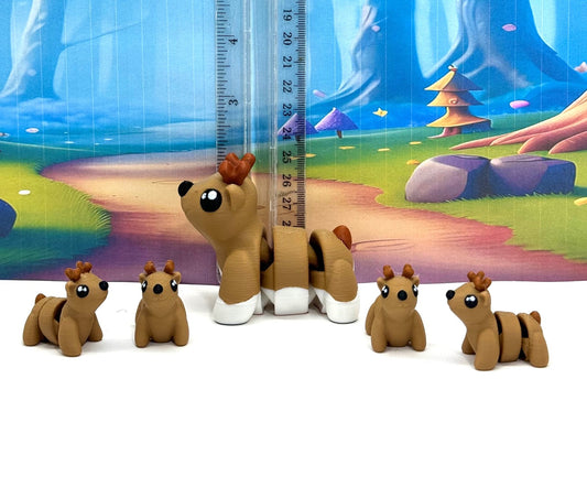 5pcs 3D Printed Reindeers, Articulated Christmas Baby Reindeers, Fidget ADHD Autism Toy, Holiday Decor -ABR001-BROWN