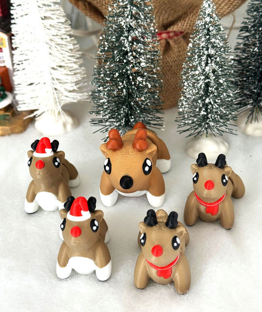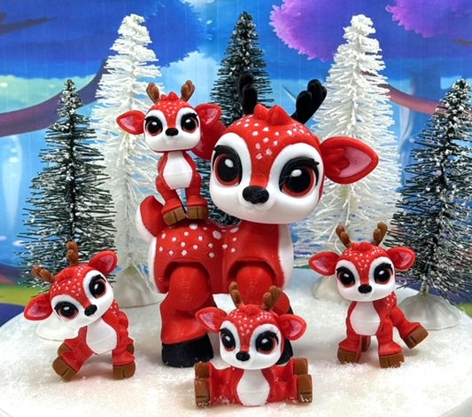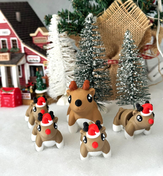 5pcs 3D Printed Reindeers, Articulated Christmas Baby Reindeers, Fidget ADHD Autism Toy, Holiday Decor - ABR001-RED