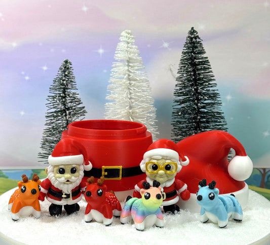 6pcs 3d Printed Santa Clause and Mrs Clause Figures, Articulated Mini Reindeers, 3D Printed Santa Egg Container, Christmas Tiny Animal Figures, Fidget ADH Toys - MSRE-SET1