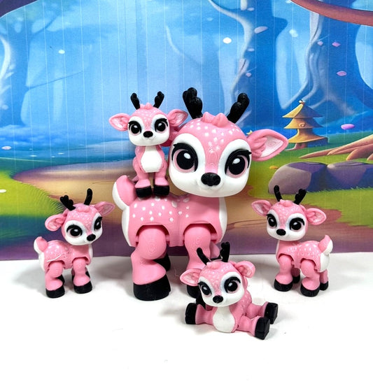 5pcs 3D Printed Reindeers, Articulated Christmas Baby Reindeers, Fidget ADHD Autism Toy, Holiday Decor - ABR001-PINK