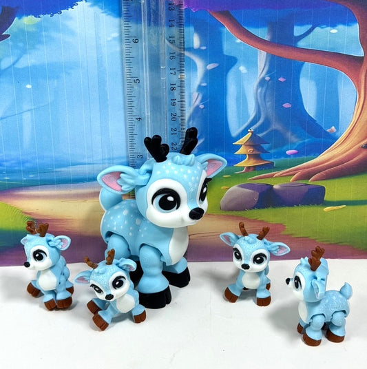 5pcs 3D Printed Reindeers, Articulated Christmas Baby Reindeers, Fidget ADHD Autism Toy, Holiday Decor - ABR001-BLUE