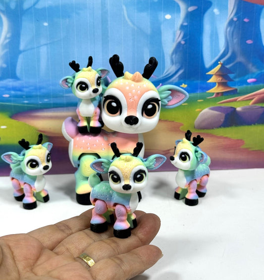 5pcs 3D Printed Reindeers, Articulated Christmas Baby Reindeers, Fidget ADHD Autism Toy, Holiday Decor - ABR001-RAINBOW