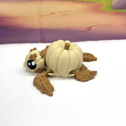 3D Printed Pumpkin Turtle, Articulating Mini Pumpkin Turtle, Fall Desk Decor Fidget ADHD Toy-TP001-BEIGE