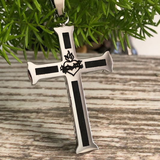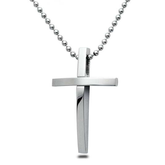 Personalized Cross Necklace for Men Polished Stainless Steel Cross Pendant Necklace 24 Inches Chain SSN151