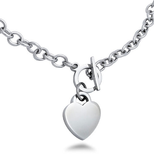 Heart Necklace, Personalized Stainless Steel Heart Toggle Necklace 18 Inch SSN100