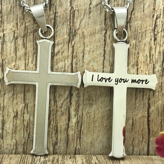 2pcs Personalized Cross Necklace for Men and Women Polished Stainless Steel Cross Pendant Necklace 24 Inches Chain SSN151/SSN056