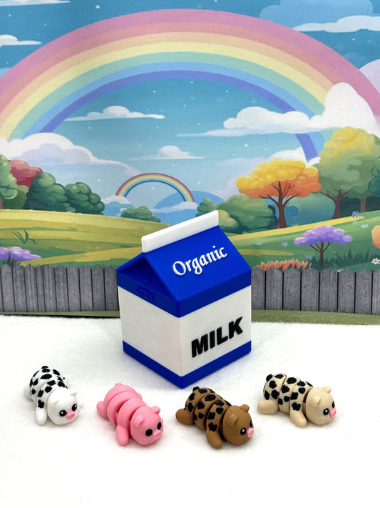 5pcs Mini Cows with Milk Carton, 3D Printed Articulated Fidget Mini Cow Figures, Party Decorations MC001-4X