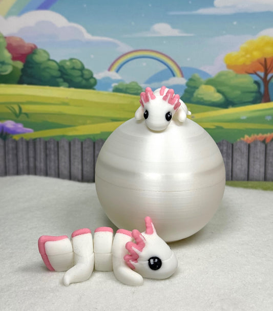 2pcs 3D Printed Articulated Mini Axolotl with Egg, 4pcs Colorful Fidget Mini Axolotl Figures, Tiny Animal Figures, Birthday Party Decorations MA001-2X