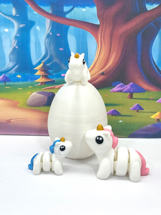 3D Printed Articulated Mini Unicorn with Egg, 2pcs Colorful Fidget Mini Unicorn Figures, Tiny Animal Figures, Birthday Party Decorations MU001-3X