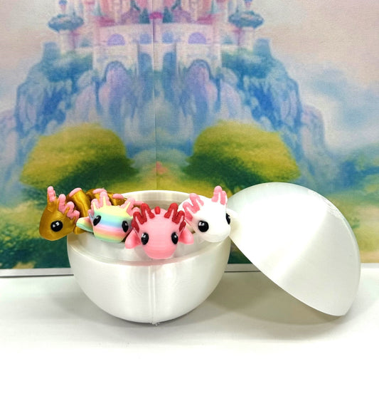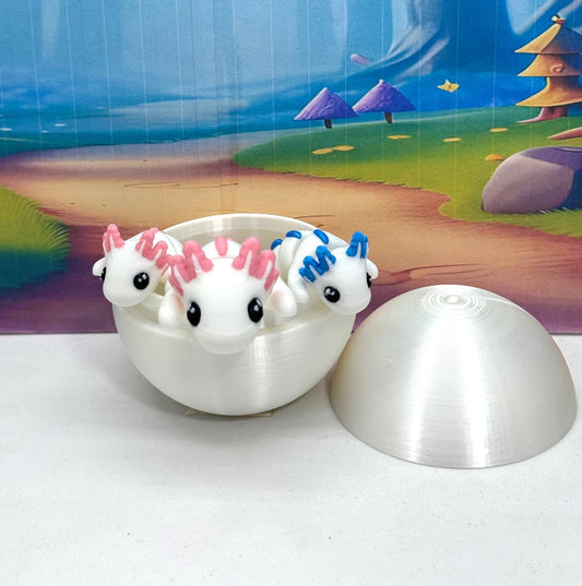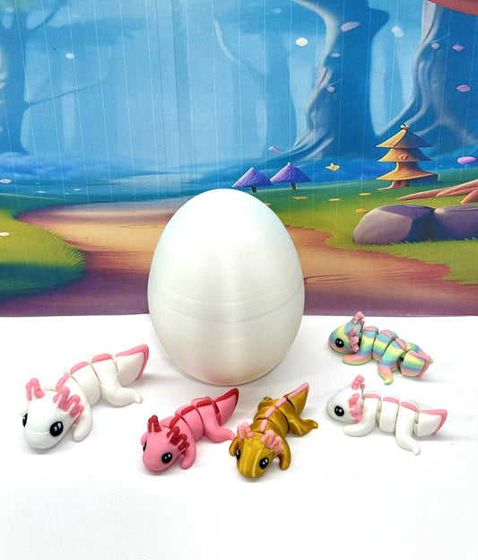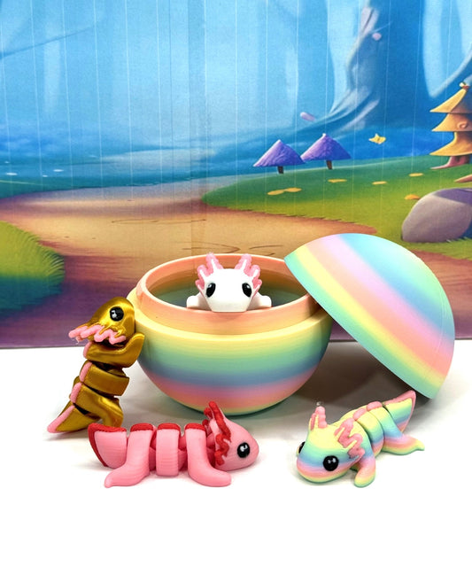 3D Printed Articulated Mini Axolotl with Egg, 3pcs Colorful Fidget Mini Axolotl Figures, Tiny Animal Figures, Birthday Party Decorations MA001-3X