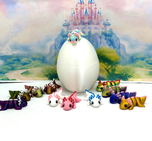 12pcs Baby Axolotl with Egg, 3D Printed Articulated Colorful Fidget Axolotl, Tiny Animal Figures, Birthday Party Decorations BA001-SET-PHE