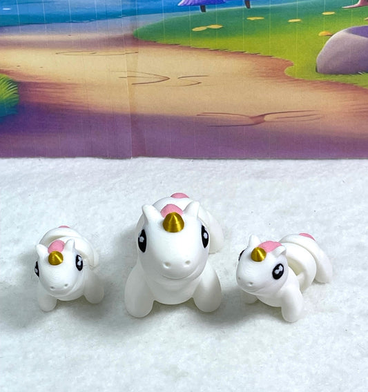3D Printed Articulated Mini Unicorn with Egg, 2pcs Colorful Fidget Mini Unicorn Figures, Tiny Animal Figures, Birthday Party Decorations MU001-PE-3X