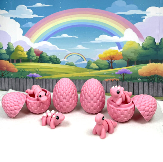 4pcs 3D Printed Mini Dinosaurs with Egg, Articulated Mini Dinosaurs, Fidget Mini Pocket Pals -MD001-PINK