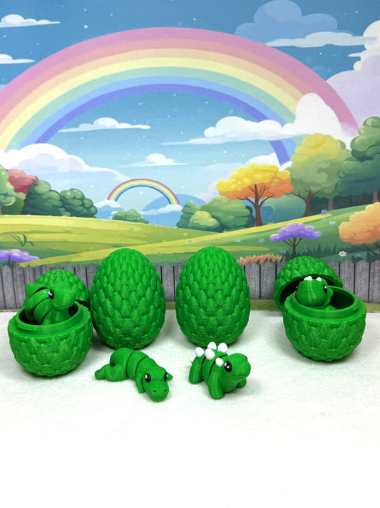 4pcs 3D Printed Mini Dinosaurs with Egg, Articulated Mini Dinosaurs, Fidget Mini Pocket Pals -MD001-Green