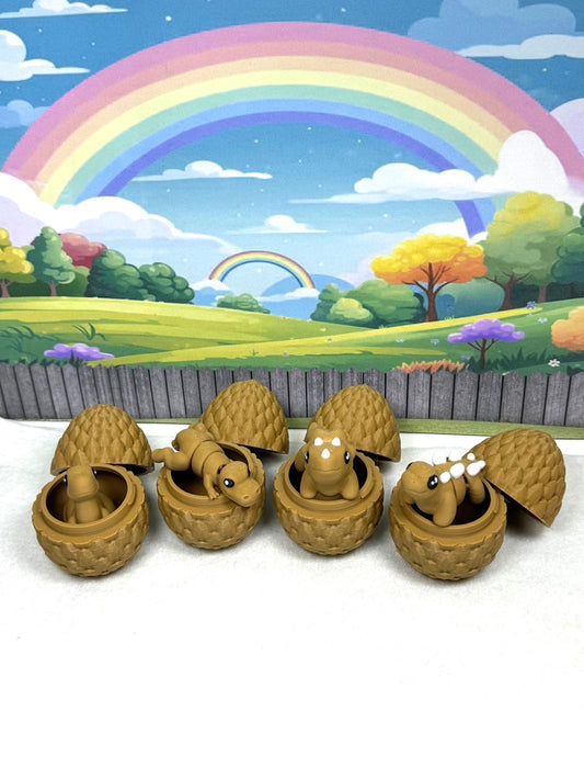 4pcs 3D Printed Mini Dinosaurs with Egg, Articulated Mini Dinosaurs, Fidget Mini Pocket Pals -MD001-TAN