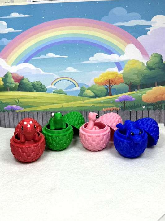 4pcs 3D Printed Mini Dinosaurs with Egg, Articulated Mini Dinosaurs, Fidget Mini Pocket Pals - MD001-ASS
