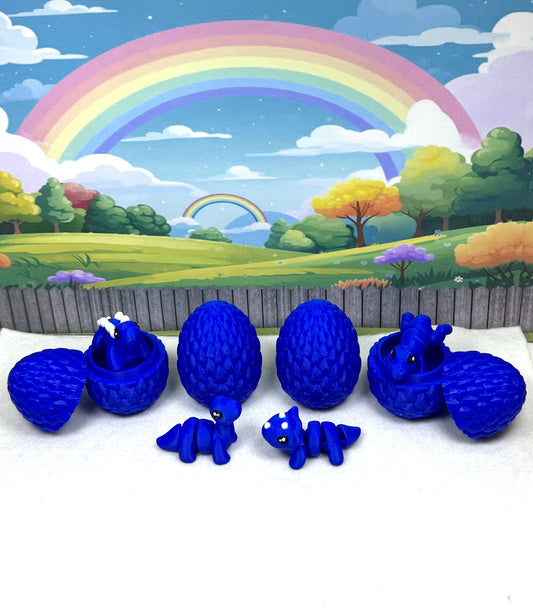4pcs 3D Printed Mini Dinosaurs with Egg, Articulated Mini Dinosaurs, Fidget Mini Pocket Pals -MD001-Blue