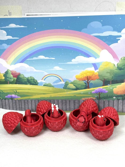 4pcs 3D Printed Mini Dinosaurs with Egg, Articulated Mini Dinosaurs, Fidget Mini Pocket Pals -MD001-RED