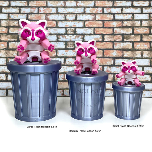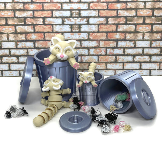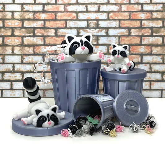 3D Printed Racoon with Trashcan, Articulated Raspberry Trash Panda racoons, Tiny Animal Figures, Fidget ADHD Autism Toy AR006