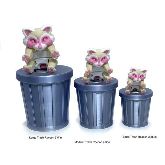 3D Printed Racoon with Trashcan, Articulated Albino Trash Panda Racoons, Tiny Fidget Animal Figures, Fidget ADHD Autism Toy AR003