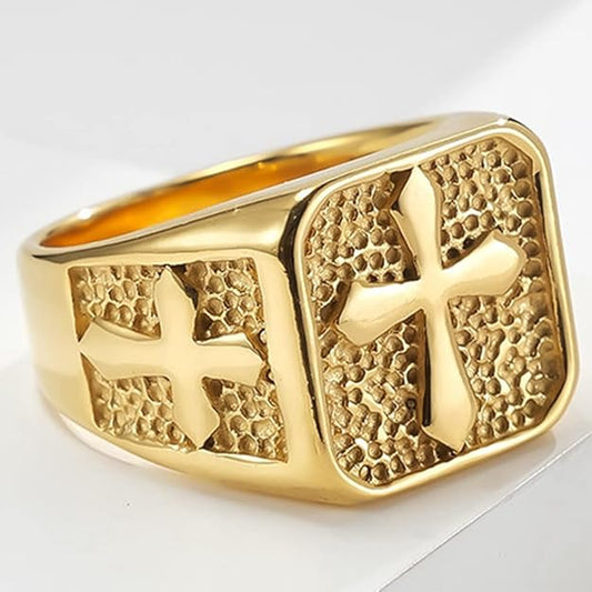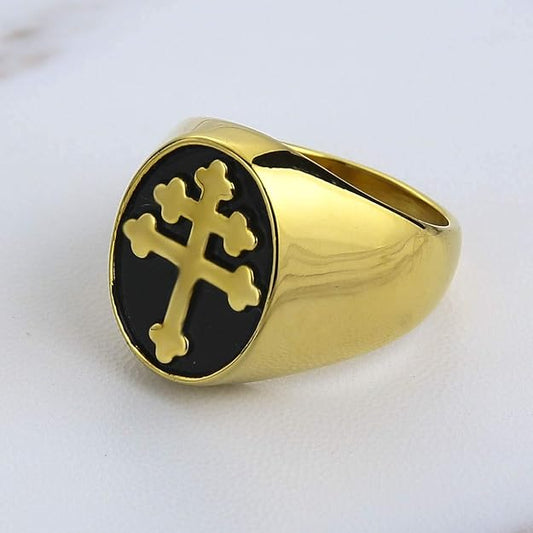 Lorraine Cross Signet Ring Stainless Steel Gold Signet Cross Rings Gift for Men Women SSR959-G