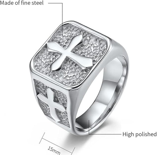 Lorraine Cross Signet Ring Stainless Steel Signet Cross Rings Gift for Men Women SSR959-S
