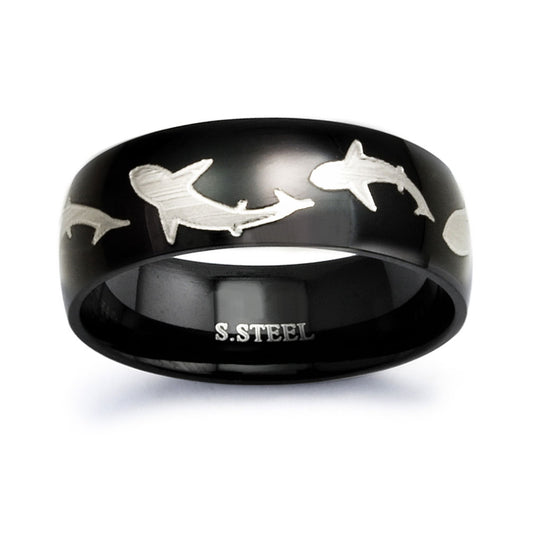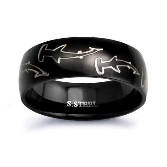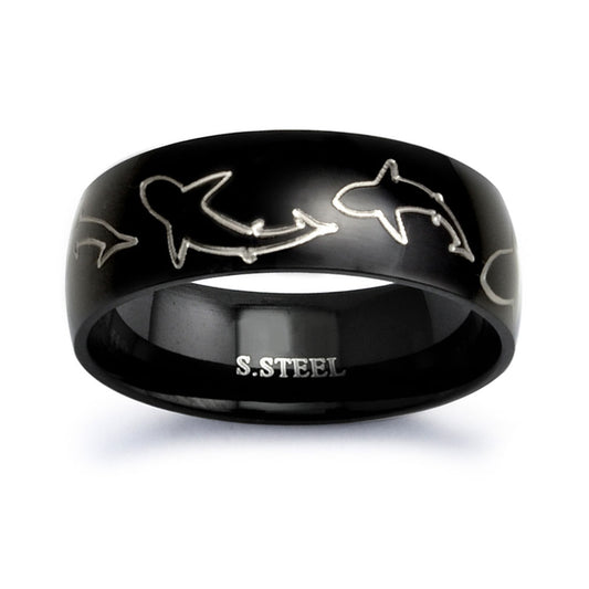 Personalized Stainless Steel Ring for Men, Laser Engraved Shark Design, Anniversary Ring Customized Promise Ring SSR409