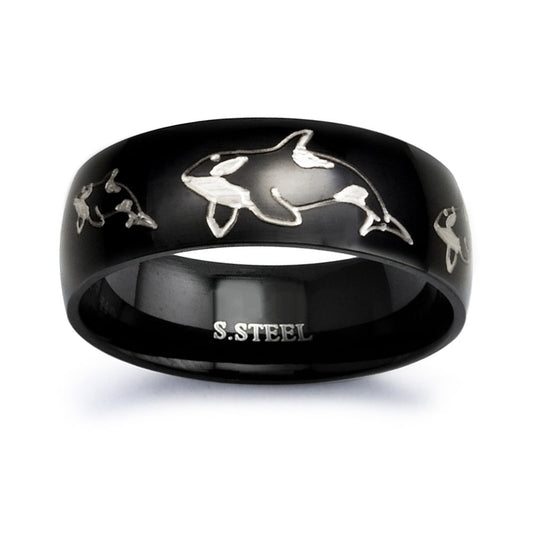 Orca Ring, Personalized Stainless Steel Ring for Men Polished Classic Dome Ring Customized Promise Ring SSR410