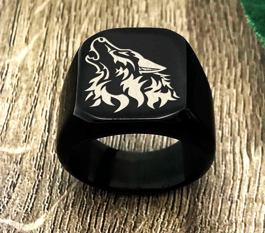 Wolf Ring Personalized Stainless Steel Signet Ring for Men Polished Customized Ring SSR582