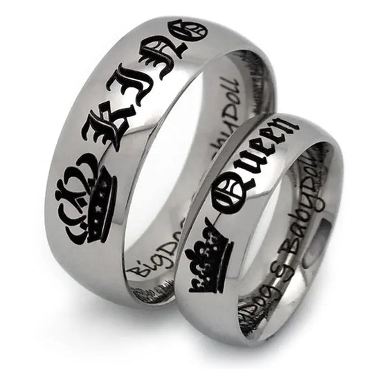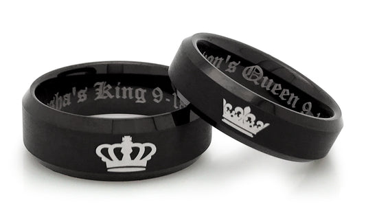 8mm/6mm King and Queen Rings, Personalized His & Hers Titanium Wedding Band Ring, Couples Ring Set TCR411 (Copy)