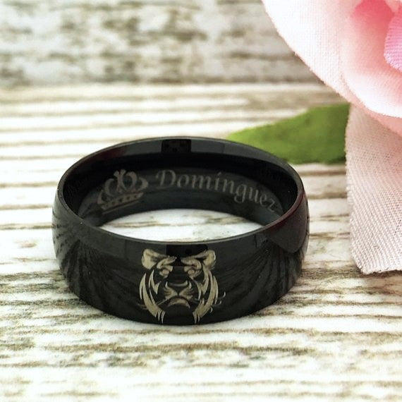 Lion Ring, Titanium Ring, Personalized Ring, Comfort Fit Beveled Edge Ring, Gifts for Women Men TRB411